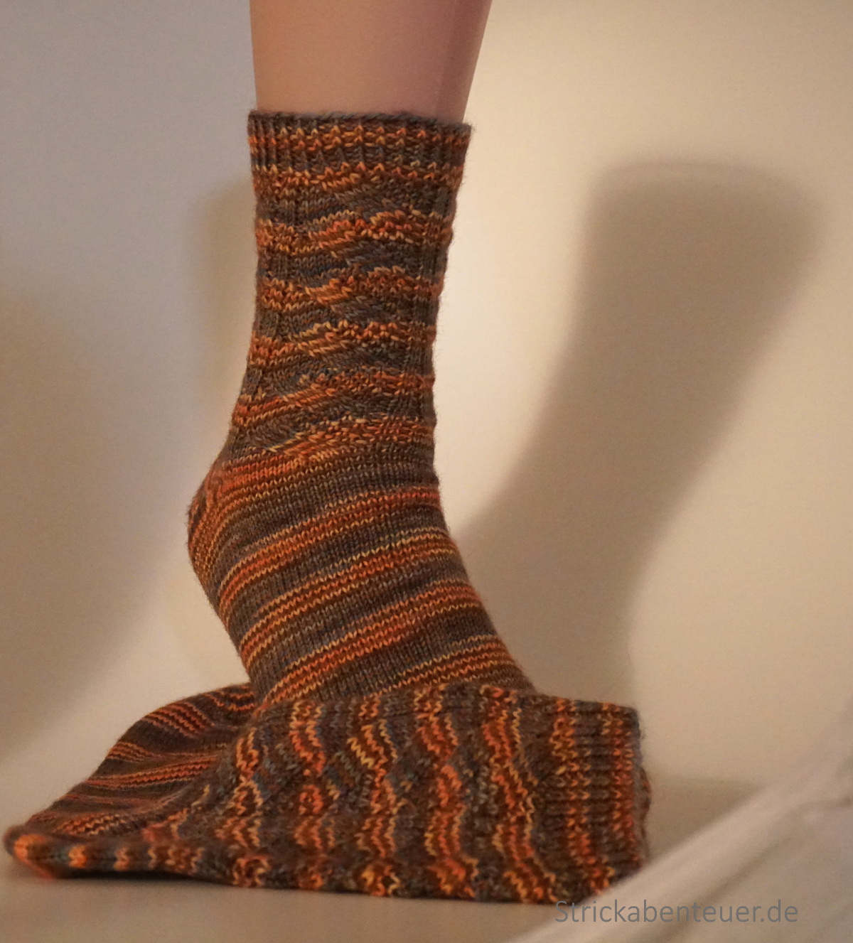 Das Muster „Nutkin“ passt auch sehr gut auf Männerfüße und lässt sich einfach stricken. Mit einer kleinen Abwandlung, unten beschrieben, hatte ich auch ein bisschen was Neues auf der Nadel.